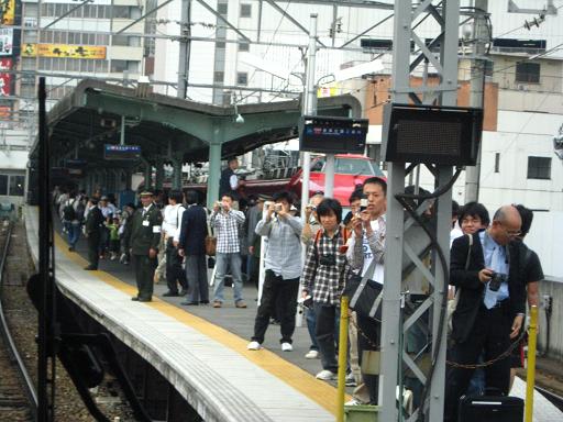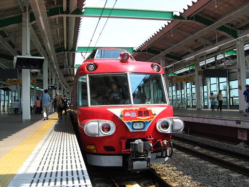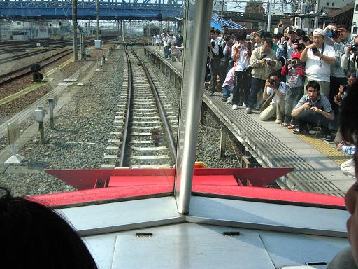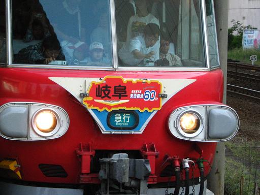僕が乗車したのは1日目の5/17(土)、岐阜→豊橋と豊橋→神宮前、どちらも岐阜側の7020号車でした。 まず常滑駅から出発。 いきなりポケモン電車が通過、幸先の良さそうなスタートです。 その後2200系後期車の先頭に乗車 一宮では新5000系を目撃、いよいよ増産されて7000系を追いつめる悪役側に回り始めようとしているようです。 昔はここに7000系が居たのに、少々悲しい気分でした。 その後、鐵に目覚めた25歳程度?の大人のおねーさまと雑談しつつ岐阜を目指しました。 んで岐阜駅に入線.....。 って、まてまてぇ!!!なんじゃこりゃ! 凄い数の鐵の方々が写真を撮影しています。 KR鉄道掲示板のお友達はここで4時間も待ったそうです。 うわぁ、ある意味壮観。でもこの中へこれから突入しなければならんのだ! 岐阜駅にて。 なんとか撮影に成功です。 2200系到着から7019F出発までは6分間、当然先頭車には乗れないので最後尾展望室後ろで立って後方展望をする事にしました。 先ほどまでご一緒した大人のおねーさまはダッシュで先頭車に突入したようですが、はたしてどうなった事やら....。乗れても展望は見えなかったかも知れないです。 鳴海駅で特急待避の間に撮影した写真です。 この時、車いすの障害者の方までもがこの7000系を撮影しに来ていました。 苦労をしてでも最期の勇姿を見ておきたい、そんな気持ちにさせてくれるのが7000系という電車なのでしょう。 車内には松葉杖をついた人とかも居て、多少無理を承知でも鐵なら体が動いてしまう、そういう魅力があるんですね。 この後、おじさんたちと少々の雑談をして超満員の車内で豊橋一路。 豊橋駅にて。 岐阜からこの位置に乗り続けた甲斐がありました。 前にいた人たちが車外へ降りた空きに入って、なんとか先頭の床をGETしました! 隣には小さい子を立たせて上げて、いざ後半夢一路です。 それにしても豊橋も凄い人ですね。その為が、ブーっという電笛を高らかに鳴らしての発車でした。 舞木車検場にて。7000系が居ます。まさか解体待ちじゃないですよね。 さっきは5000が居たようですが、もう見あたらず....。 こうして7000系から7000系を見れるのもあと僅かな期間でしょうね。 寂しい事です。 先頭の乗客と一心同体になりつつ神宮前に到着。 もう少し乗りたい気持ちを抑えつつここで下車です。 ヘッドマークが岐阜になっていました。 このまま岐阜までの旅路を全うした事でしょう。 でも、僕はテスト勉強をしないといけないのでここで終わりです。 余談 常滑に帰ったら、なんとポケモン電車のFが常滑~太田川の普通電車仕業に入ってるではないですか! まさかこんな地元のローカル運用にこういうイベント電車が入るとは!!びっくりしながらも写真を何枚も撮影した事は言うまでもないでしょう。 昔は7037Fも入っていた太田川行きの普通電車、久々に良い夢を見せて貰いました。 本当に楽しい1日だった! 7019F、2008F、3701F、その他多数の名鉄電車よ、ありがとう!! そして7000系よ、1日でも長く走ってくれ!!!!